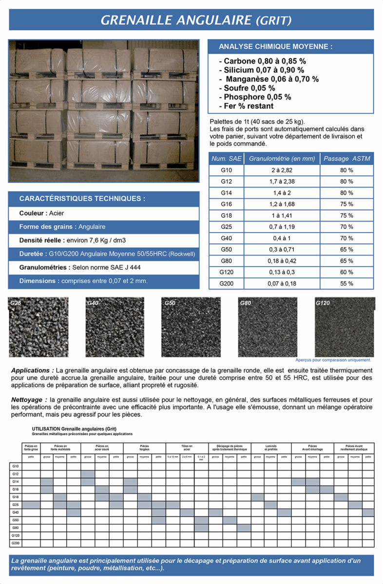 | 9726 | Grenaille Angulaire G25 (0.7 - 1.19mm) 50/55 HRC (le sac 25 kg) | 59,70 € | |