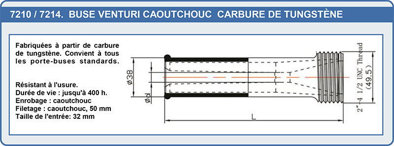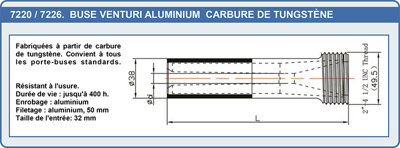 | 7277 | Buse venturi alu Tungstène ø12.5 Lg : 120 mm | 91,10 € |