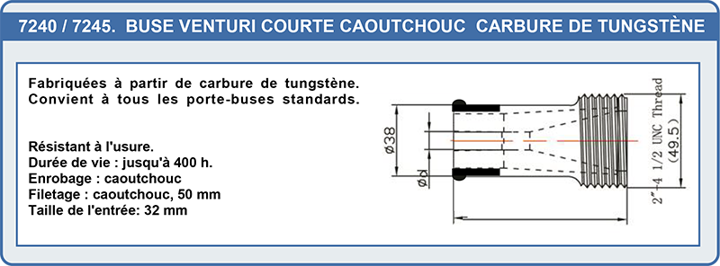 | 7245 | venturi courte caout. Tungstène ø12.5 Lg : 80 mm | 77,20 € |