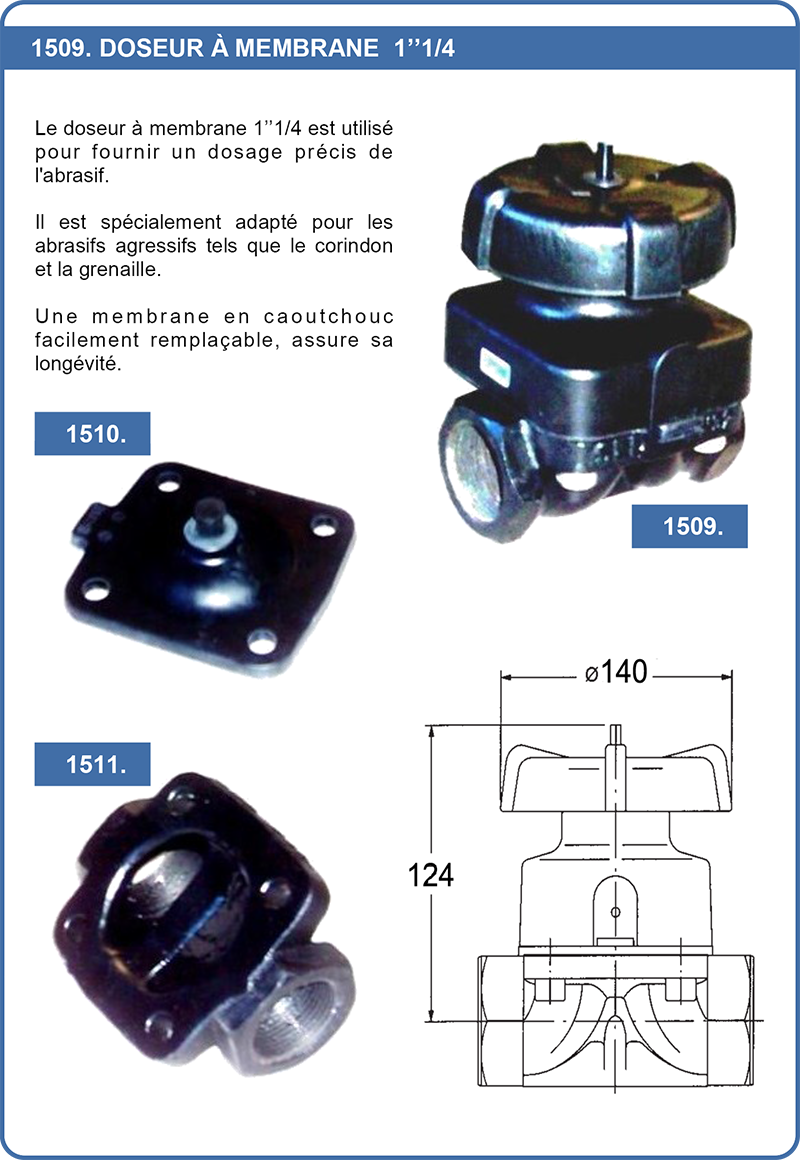 | 1509 | Vanne de dosage d abrasif 1 1/4 a membrane | 368,00 € |