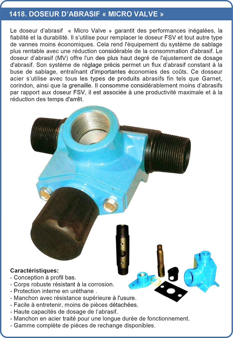 | 1418 | Doseur d abrasif 1 1/4 F avec Té mélangeur MM | 440,80 € |
