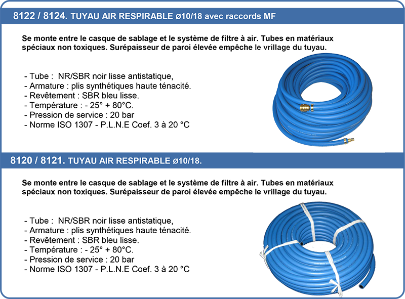 | 8122 | Tuyau air ø10 x 18 ( lg : 10 m équipé raccords MF) | 79,40 € | |