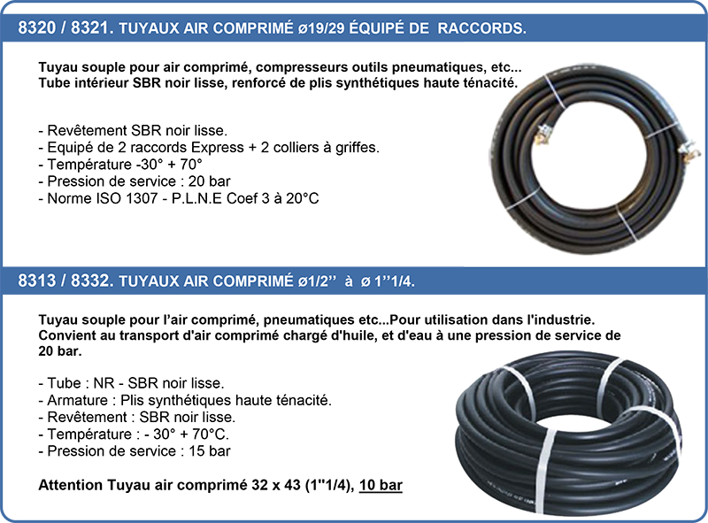 | 8320 | *PROMO* Tuyaux air comprime equipe 20m ?19 | 56,10 € | |